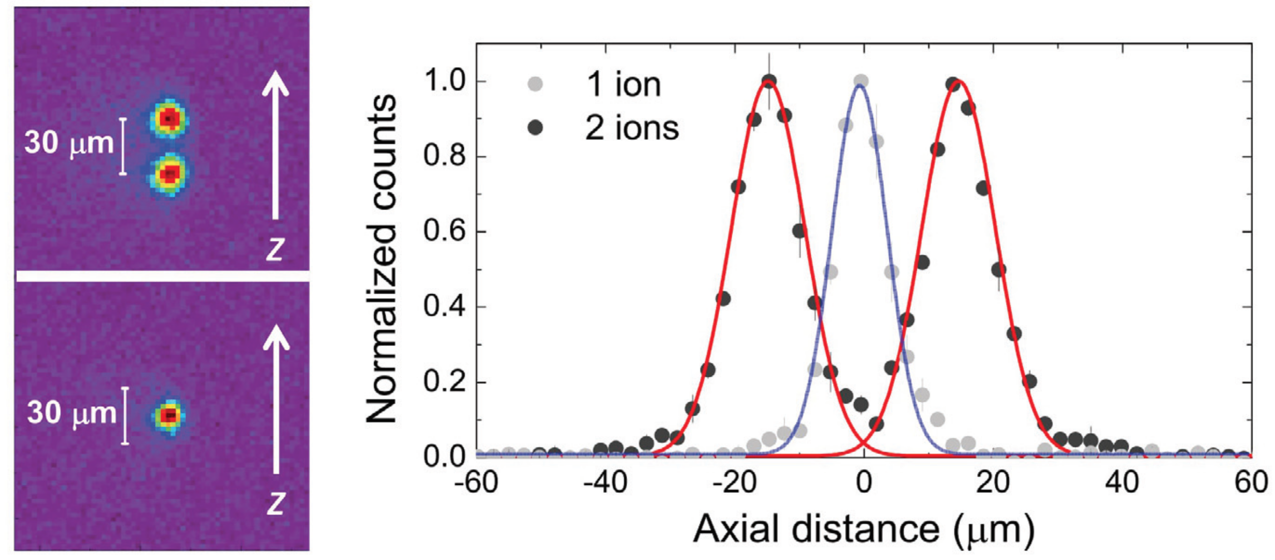 The experiments performed in this setup have provided us the characterization of a single laser-cooled 40Ca+ ion as an optical detector of electric signals. In 2017, a manuscript reporting these measurements has been published in Scientific Reports. Further characterization measurements were realized with two 40Ca+ ions in order to extend the method to Penning traps. These results have been reported in a special issue of Journal of Modern Optics.